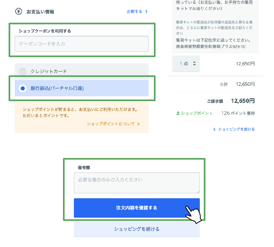 集荷キットをお持ちの場合は、注文後お手持ちの集荷キットでクリーニングされたい商品をお送りください。